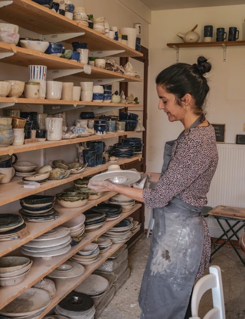 Gwen vit avec la céramique depuis 20 ans. D’abord à titre de passion, puis progressivement en vendant ses créations. Elle vit aujourd’hui uniquement de cette activité, entre ses créations et les ateliers.