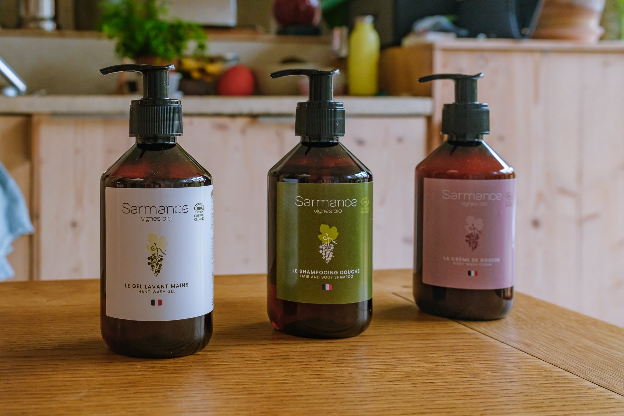 - L’hygiène au quotidien : gel lavant pour les mains, crème de douche, shampoing, mousse nettoyante visage