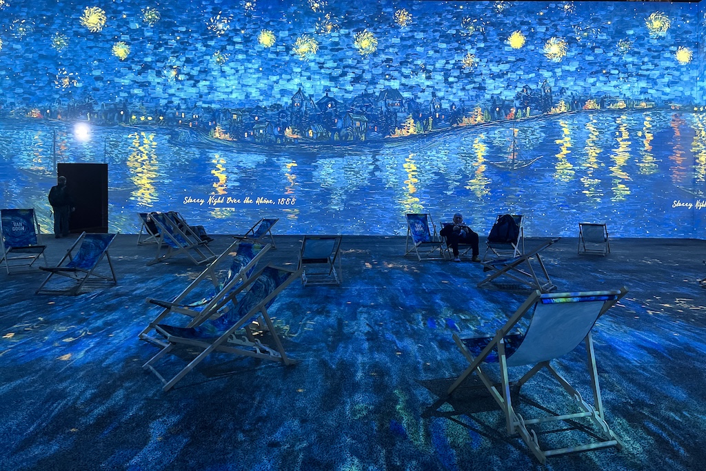 L’installation se fait forte d’avoir été vue par des millions de visiteurs à travers le monde depuis sa création, dans les plus grandes villes des continents développés. Ce n’est pas donc une création unique, mais un concept nomade, facilement transposable de lieux en lieux. Elle suit la mouvance des loisirs expérientiels, où mapping et réalité virtuelle embarquent le public dans un lieu inaccessible en réel ou une thématique donnée. Ici c’est donc une immersion dans les oeuvres de Van Gogh qui nous est proposée.